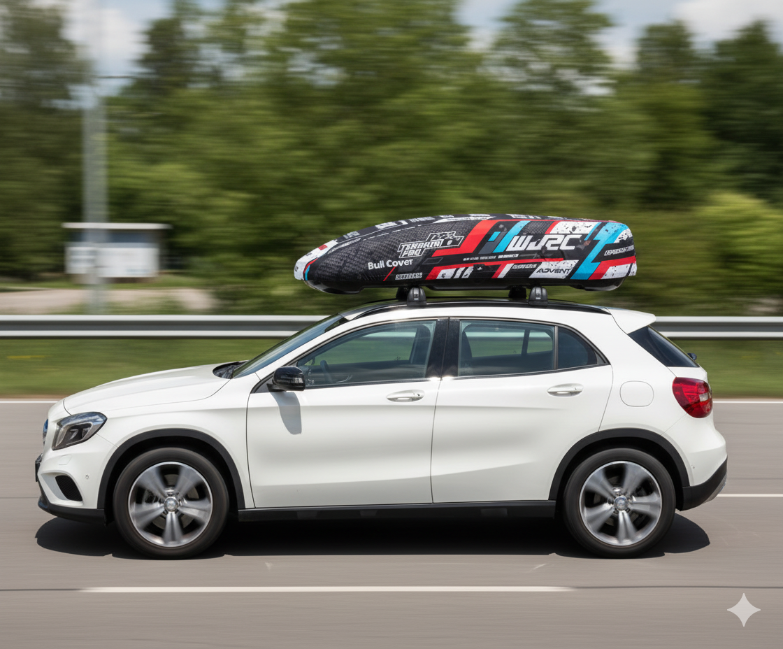 Transforma tu viaje y elimina preocupaciones. Nuestra funda de neopreno Bull Cover no solo le da a tu cofre un look inspirado en la F1/WRC, ¡sino que lo mantiene cerrado y seguro en carretera, sin necesidad de lingas! Protección UV, arañazos y clima, con ajuste perfecto en tallas S, L, XL.